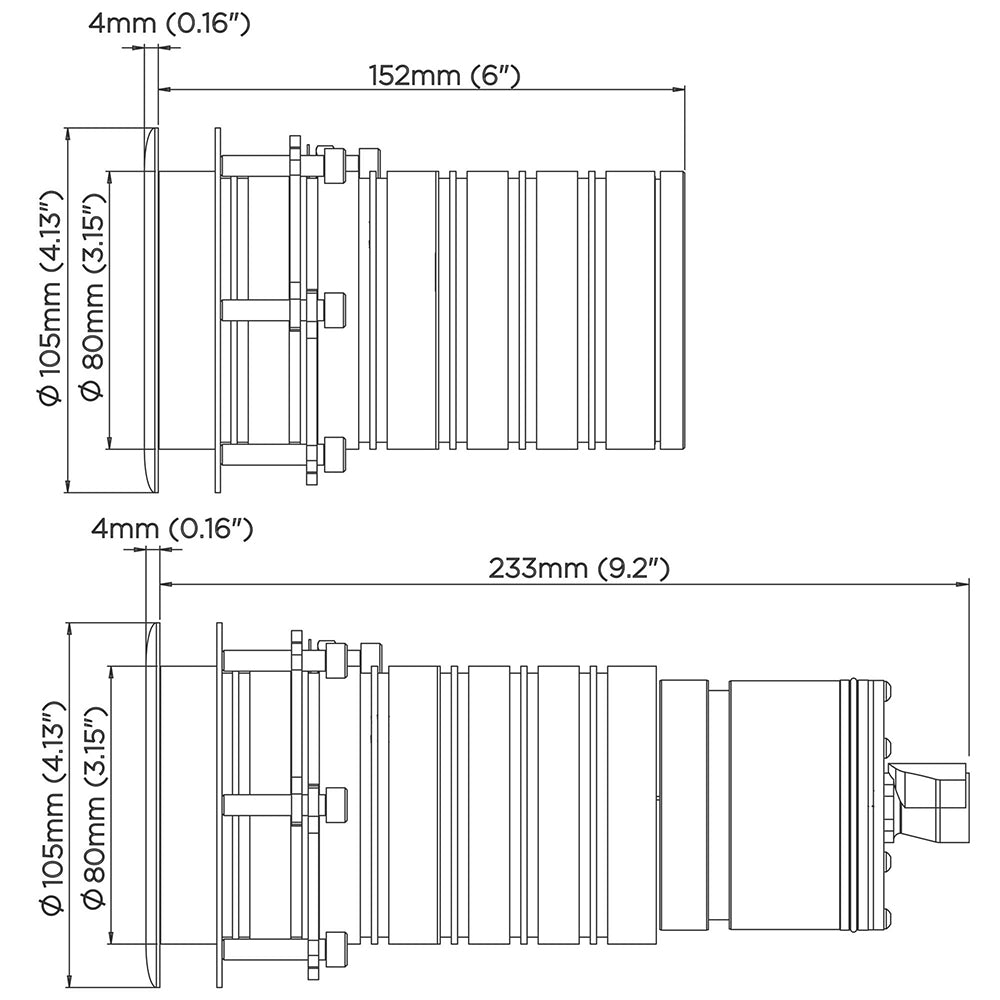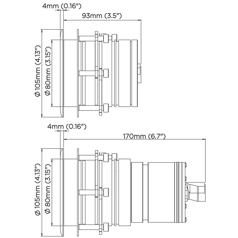 The ultra low profile outer face of the housing is designed for vessels wanting to go fast and have no impact on speed or flow of water over the hull, perfect for the sides or running surfaces.